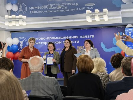 Председатель комитета по трудовым ресурсам Торгово-промышленной палаты Нижегородской области Татьяна Гладина получила благодарственное письмо от декана Факультета социальных наук ННГУ им. Н.И. Лобачевского Романа Голубина.